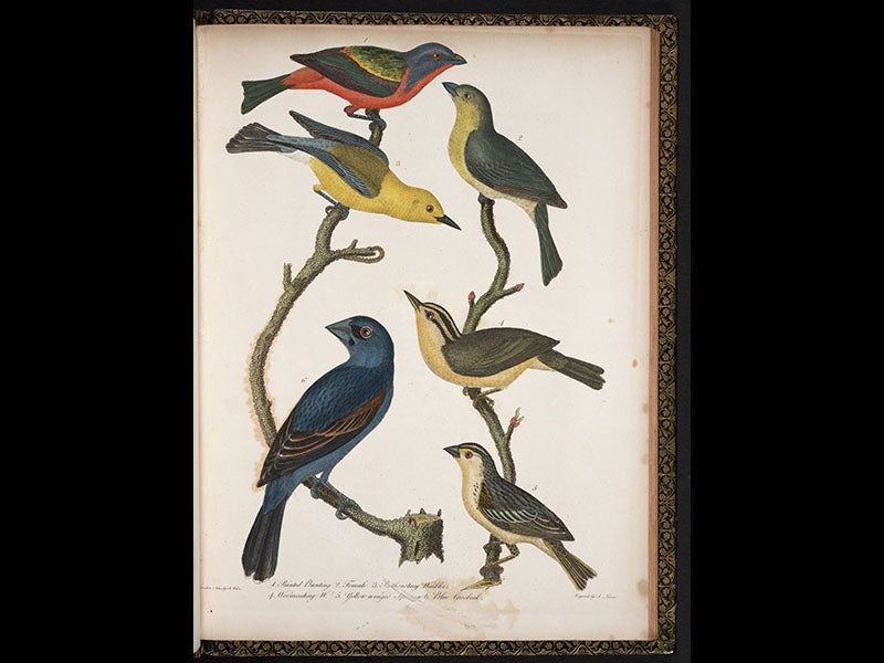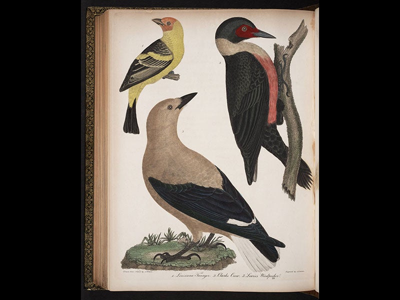 Alexander Wilson, an American ornithologist, was born July 6, 1766, in Scotland. Wilson came to the fledgling United States in 1794, working as a schoolteacher in Pennsylvania, where he became interested in birds. He taught himself to draw and soon amassed a portfolio of paintings. Between 1802 and 1808 he travelled the country, seeking subscribers and new birds, and in 1808 the first volume of his American Ornithology was published. It would be completed in nine volumes, the last volume finished just after his death in 1813. One of the many novelties of his work is the first depiction of Lewis's woodpecker and Clark's nutcracker, two new species discovered by Lewis and Clark out west. Wilson drew these from the very specimens brought back from the expedition, which were deposited in Peale's Museum in Philadelphia. We have the complete set of the American Ornithology in our History of Science Collection.