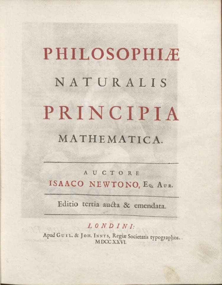 Image source: Philosophiæ naturalis principia mathematica. Apud Guil & Joh Innys, 1726, Title page.